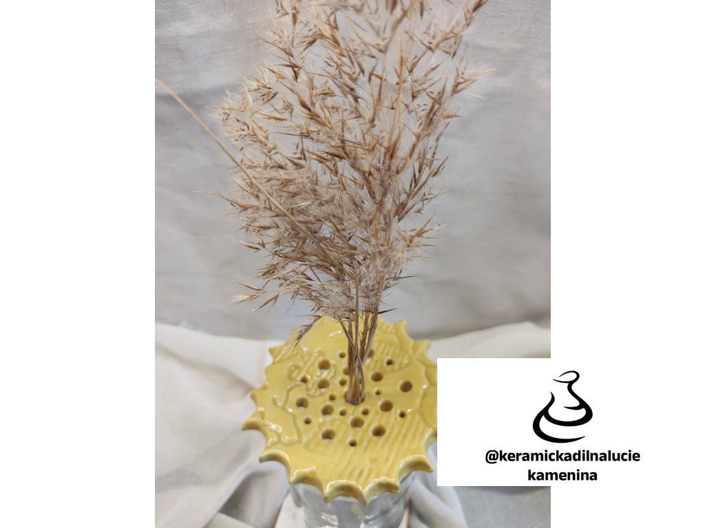- Systém otvorů (nebo trnů): V kameninovém víku nebo dnu jsou precizně rozmístěné otvory. Každý stonek zasunete do samostatné dírky, která ho pevně sevře.